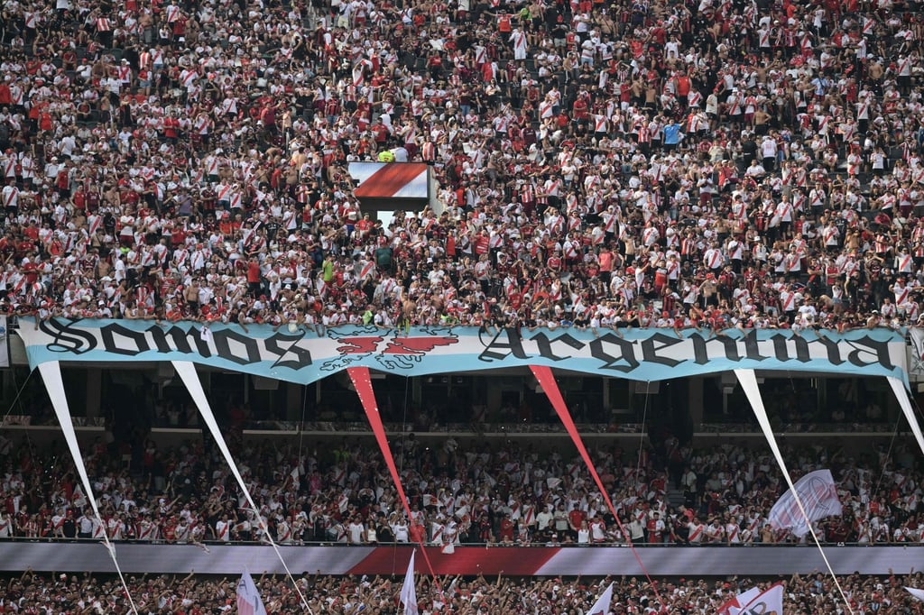 Знаме с надпис „Ние сме Аржентина“ и карта на Фолкландските острови е изложено преди футболен мач в Буенос Айрес на 19 април. Снимка: AFPЗнаме с надпис „Ние сме Аржентина“ и карта на Фолкландските острови е изложено преди футболен мач в Буенос Айрес на 19 април. Снимка: AFP
