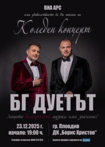 KoledenkontsertnaBGDuetatЕдин от най-мелодичните български мъжки дуети, БГ ДУЕТЪТ, ще зарадва публиката в Пловдив с дългоочакван „Коледен концерт“ в навечерието на най-светлите празници. На 23 декември 2025 г., от 19:00 часа, сцената на Дом на културата „Борис Христов“ ще оживее, за да посрещне Милчо Соколов и Кирил Веселинов – артистите, които вдъхват нов живот на златните български хитове.