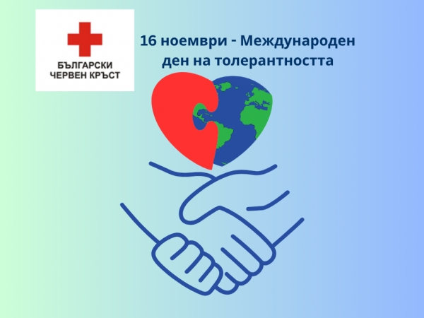 По повод Международния ден на толерантността БЧК и БМЧК отправят призив към всички – да бъдем по-отворени един към друг, да приемаме различията с разбиране и да не допускаме език на омразата. Всеки акт на доброта, всяка протегната ръка и всяка проява на уважение са крачка към един по-толерантен свят.