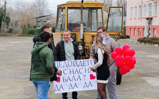 Фейсбук A A Сподели “); $(“body”).append(tempInput); tempInput.val(pageUrl).select(); document.execCommand(“copy”); tempInput.remove(); alert(“Линкът е копиран!”); }); $(“#send-email”).on(‘click’, function () { var pageUrl = window.location.href; var subject = encodeURIComponent(“Check out this page: ” + pageUrl); var body = encodeURIComponent(“I thought you might find this page interesting:n” + pageUrl); var mailtoLink = “mailto:?subject=” + subject + “&body=” + body; window.location.href = mailtoLink; }); ]]> = 1100) { var articleTop = $(‘.article-text’).offset().top – $(‘.header-menu’).height(); var articleBottom = articleTop + $(‘.article-text’).outerHeight() – $(‘.active-bar’).height(); var scrollTop = $(this).scrollTop(); var activeBar = $(‘.active-bar__sticky’); if (scrollTop > articleTop && scrollTop = articleBottom) { activeBar.removeClass(‘sticky’); activeBar.addClass(‘sticky-bottom’); } else { activeBar.removeClass(‘sticky-bottom’); activeBar.removeClass(‘sticky’); } } else { var activeBar = $(‘.active-bar__sticky’); activeBar.removeClass(‘sticky-bottom’); activeBar.removeClass(‘sticky’); } }); }); ]]> Класният ръководител на 12.Б клас в Професионалната гимназия по селско стопанство “Царица Йоанна“ в Пазарджик днес бе поканен на абитуриентския бал с… трактор. Жълтият “Болгар“ бе докаран от зрелостник (Сергио-Ангел Найденов) на плаца пред учебната сграда, а отпред на машината бе окачена “бяла дъска“ с въпрос: “Ще дойдете ли с нас на бала?“. Трите възможни отговора бяха “Да“, “Да“ и “Да“.