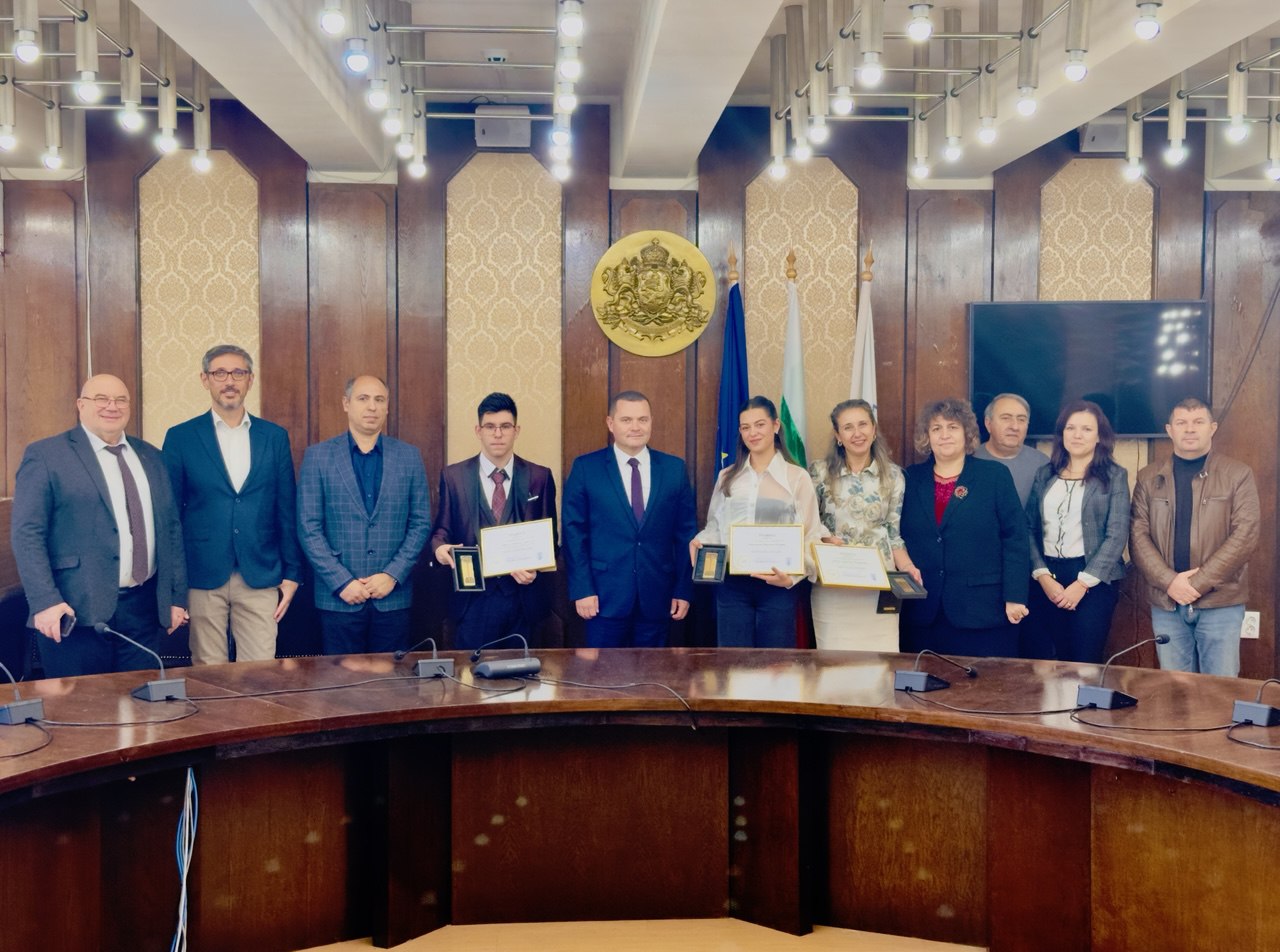 Дванайсетокласниците Вероника Илиева и Елена Йорданова и студентът в РУ „Ангел Кънчев“ Христо Христов получиха грамоти и плакети от кмета на община Русе Пенчо Милков в присъствието на зам.-кмета Енчо Енчев, д-р Росица Георгиева – председател на Постоянната комисия по образование, наука, иновации и дигитализация (ПКОНИД) при Общинския съвет и началник на РУО-Русе, и Айдоан Джелил, общински съветник и член на ПКОНИД в ОбС-Русе.
