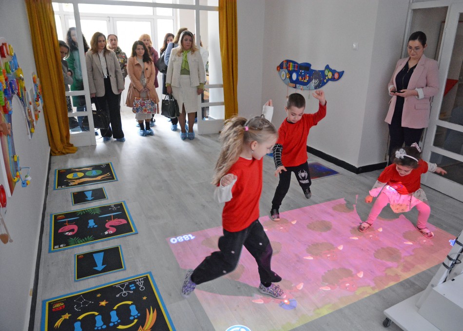 Деца от трета група „Ян Бибиян“ демонстрираха образователни активности с интерактивен под от ново поколение FluurMat, обединяващ дигитални технологии с игровия подход, най-близък до детето в предучилищна възраст.
