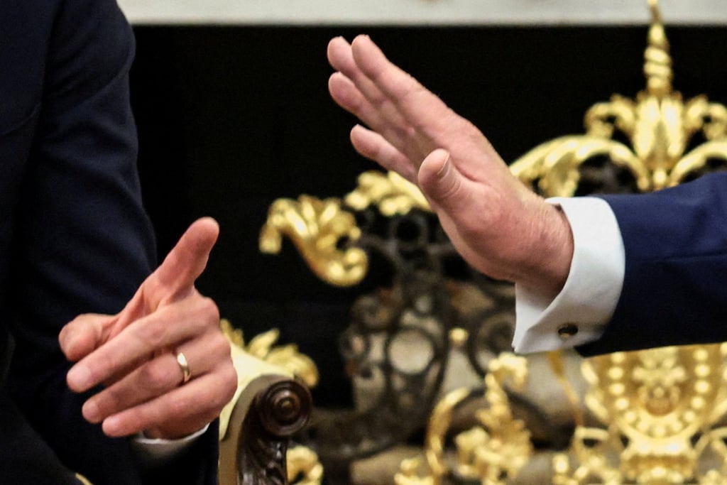 Президентът на САЩ Доналд Тръмп (вдясно) и министър-председателят на Канада Марк Карни правят жест, докато се срещат в Овалния кабинет през октомври 2025 г. Снимка: Ройтерс