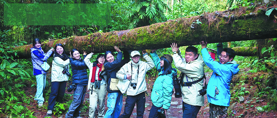 Li Ruxue (първият отдясно), Zhao Sifan (вторият отдясно) и други доброволци и служители от Центъра за опазване Shan Shui (SSCC) изследват спиращата дъха природа на окръг Metog в автономния регион Xizang. [Photo provided to China Daily]