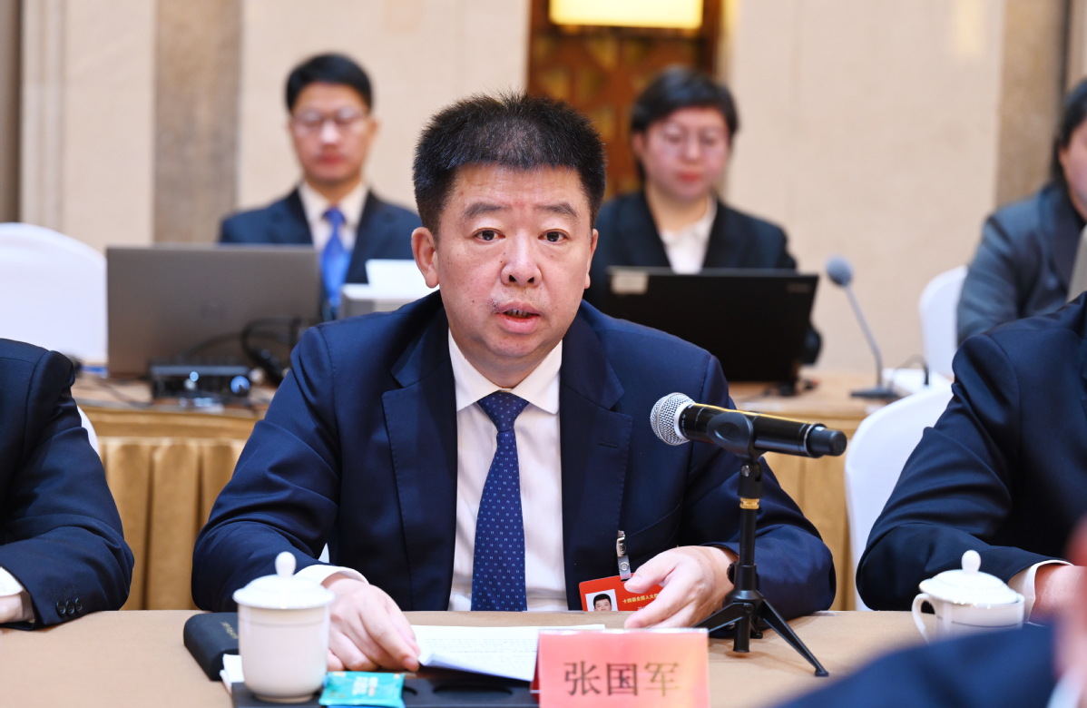 Zhang Guojun, партиен секретар на град Mudanjiang в провинция Heilongjiang и депутат в 14-ия Национален народен конгрес, говори на групово обсъждане в събота. [Photo provided to chinadaily.com.cn]