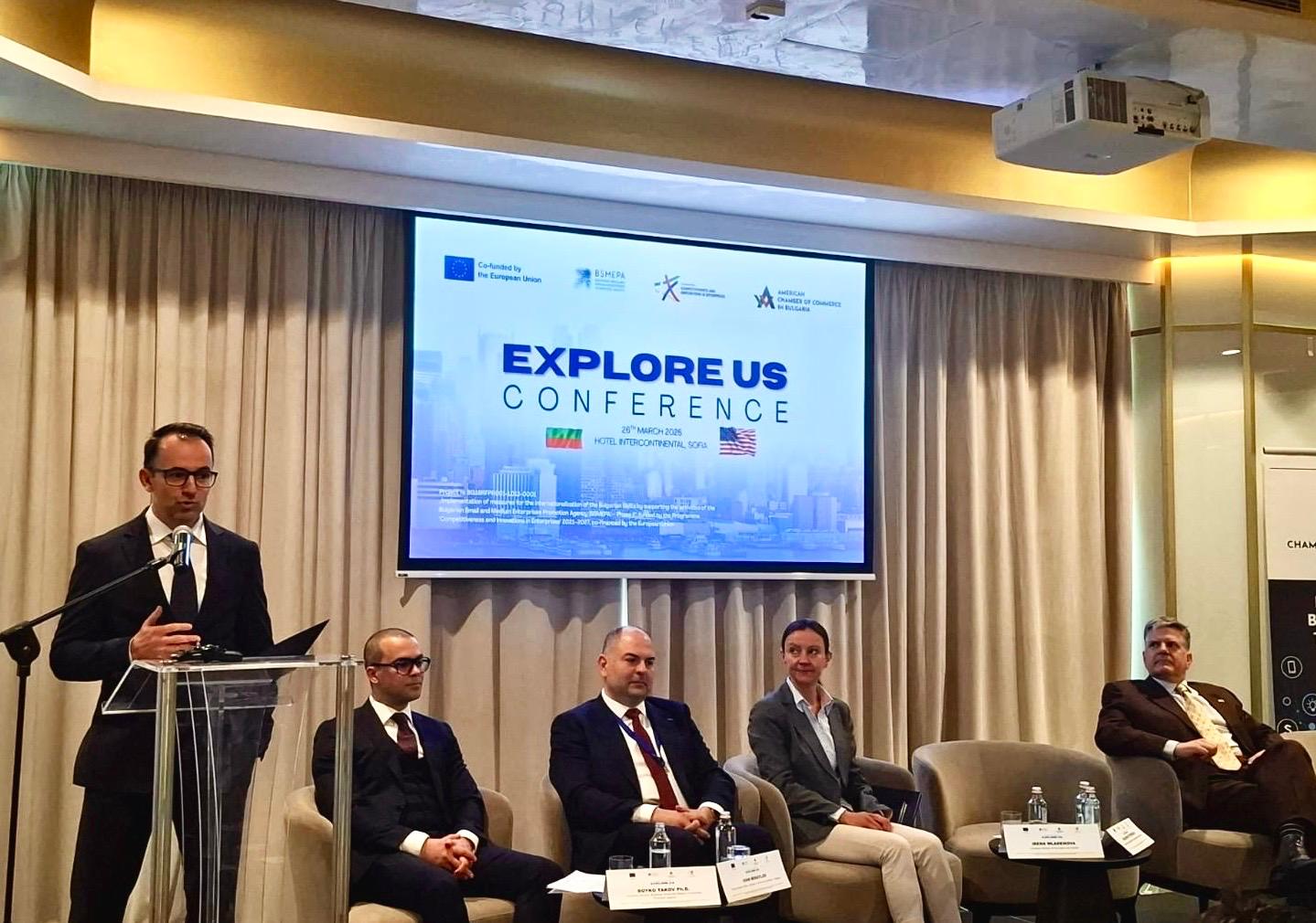Международната конференция Explore US се организира от Изпълнителната агенция за насърчаване на малките и средните предприятия и Американската търговска камара в България (AmCham), с участието на Посолството на САЩ в България.