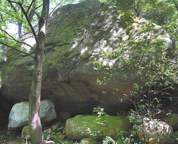Огромна скала, издълбана с китайските йероглифи tian chi cao tang (вила със сламена покривка в райско езеро) е една от новооткритите реликви в планината Лушан. XU LIN/КИТАЙ ДЕЙЛИ