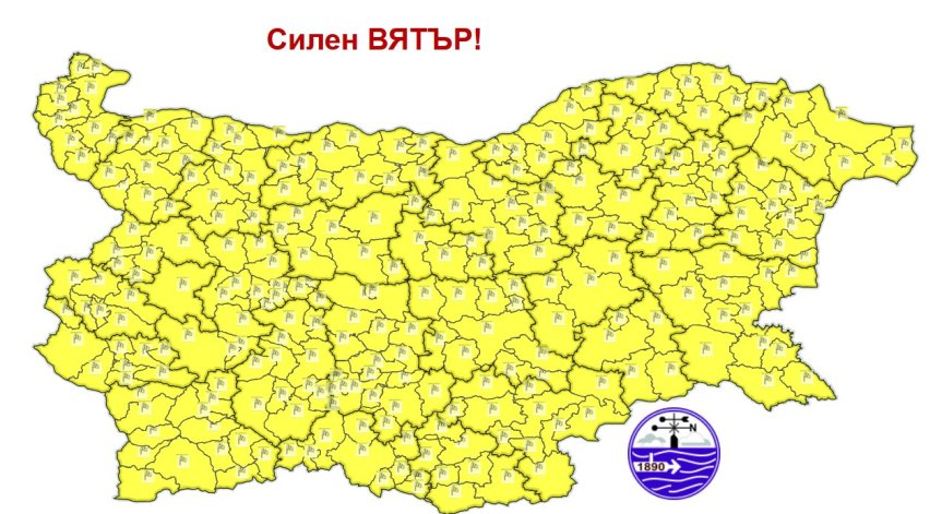 Националният институт по метеорология и хидрология издаде за сряда, 8 април, предупреждение от първа степен (жълт код) за силен северозападен вятър в цялата страна.