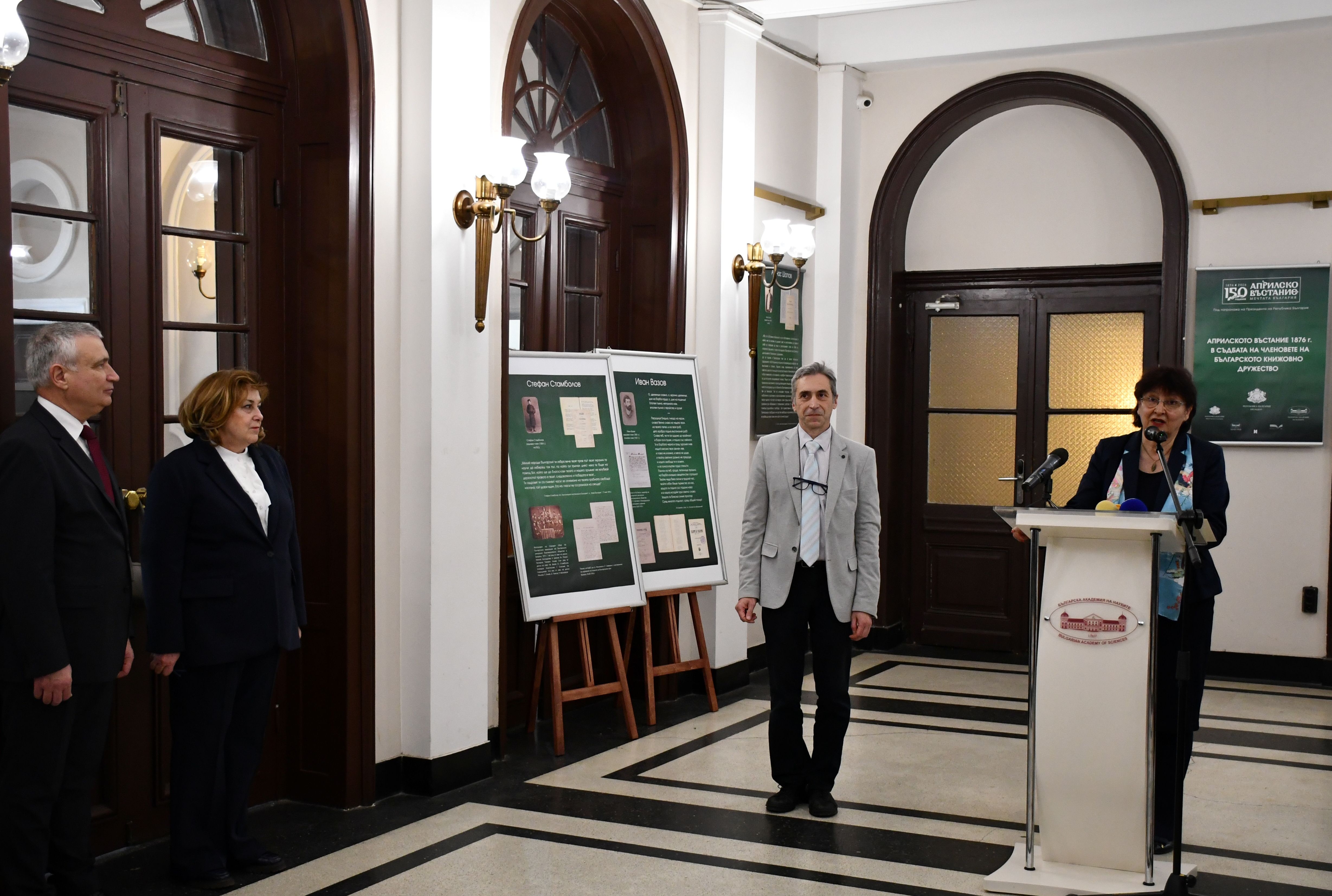 Изложба „Априлското въстание 1876 г. в съдбата на членовете на Българското книжовно дружество“ беше открита в Българската академия на науките. Експозицията е част от събитията за отбелязване на 150-годишнината от Априлското въстание под патронажа на Президента на Република Бълария.