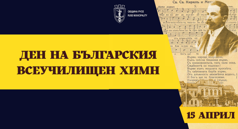 На 15 април от 16 ч. на площад „Александър Батенберг“ в Русе жителите и гостите на града ще имат уникалната възможност да станат свидетели на историческия момент отпреди 134 години, когато се раждат стиховете на българския всеучилищен химн. Проявата ще се състои близо до сградата на СУ „Христо Ботев“ – бившата Мъжка гимназия, в която Стоян Михайловски е бил учител и където под перото му излиза вдъхновеното слово.