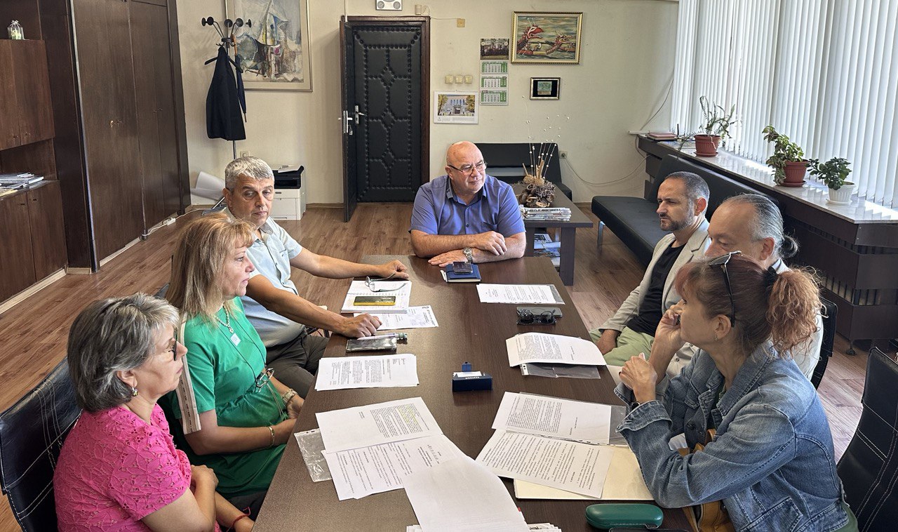 На срещата присъстваха още началникът на отдел „Култура, духовно развитие и изкуство“ Миглена Войнова, директорът на дирекция „Финансово – стопански дейности“ Емилия Пенева и директорът на дирекция „Образование и култура“ Цветослав Димитров.