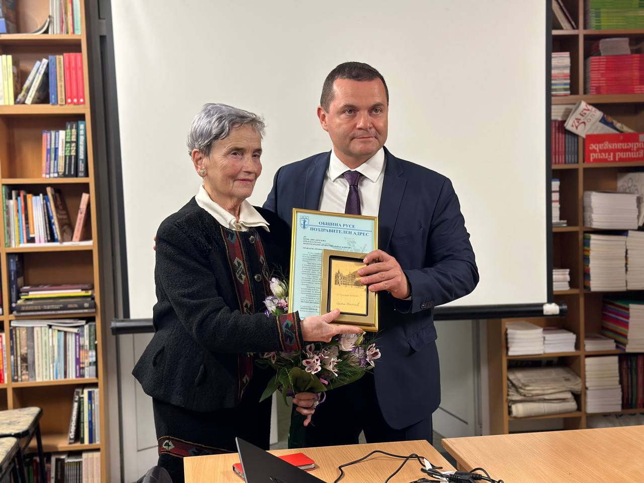 Кметът Пенчо Милков връчи плакет на Община Русе на проф. Пенка Ангелова по случай 20-годишнината на Австрийската библиотека „Елиас Канети“. Събитието се проведе в залата на библиотеката на пл. „Свобода“ 4 и събра приятели, читатели и партньори, допринесли за развитието ѝ през годините.