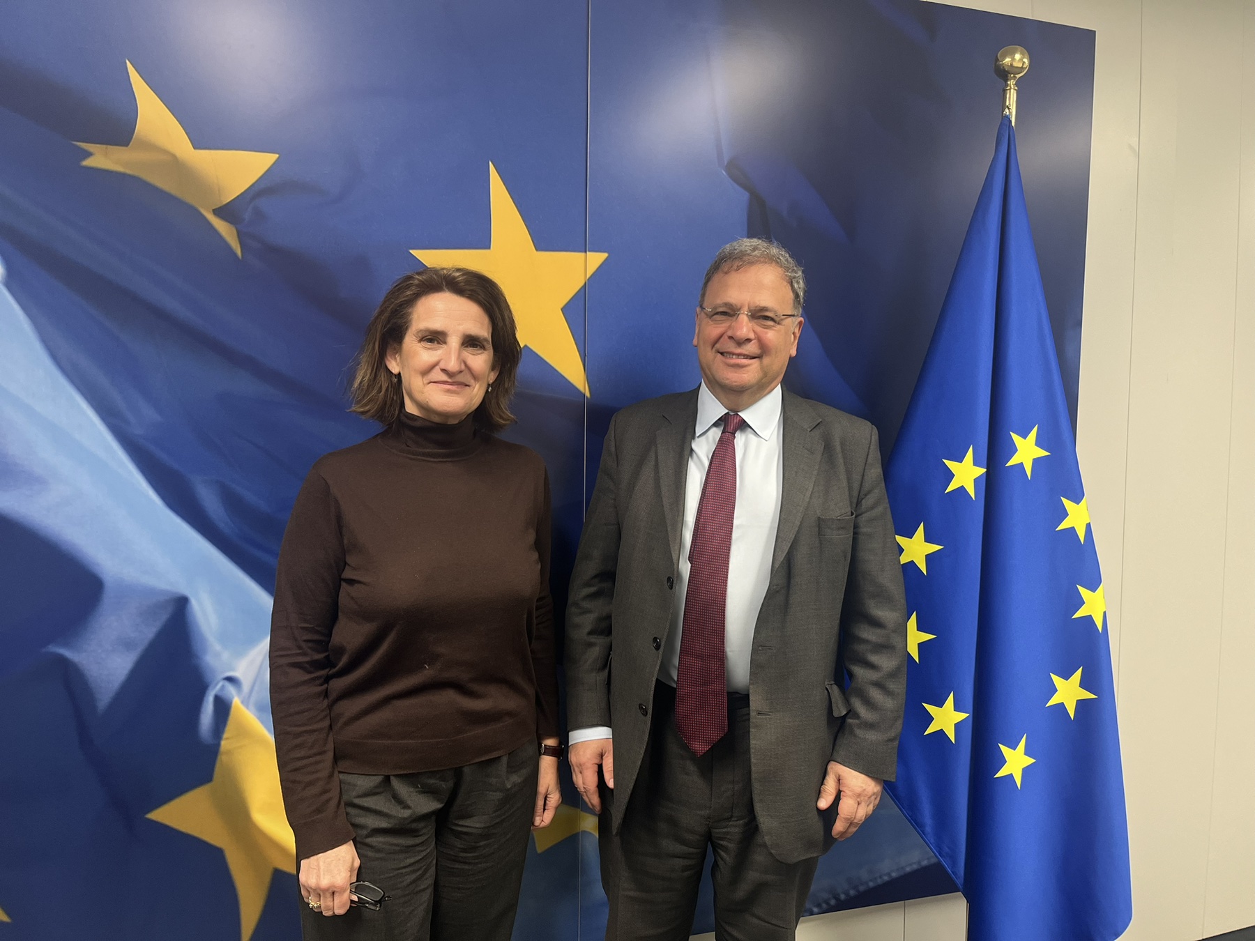 В рамките на посещението си министър Попов проведе работна среща с изпълнителния вицепрезидент на Европейската комисия Тереса Рибера, която отговаря за чистия, справедлив и конкурентоспособен преход. Двамата обсъдиха ключови въпроси от европейския дневен ред, сред които декарбонизацията на икономиката като фактор за стратегическа автономност, повишаване на конкурентоспособността и гарантиране на социално справедлив преход. Акцент бе поставен и върху прилагането на Механизма за корекция на въглеродните емисии на границите (СВАМ) и новата схема за търговия с емисии (ЕСТЕ2), която обхваща сградния фонд и транспорта.