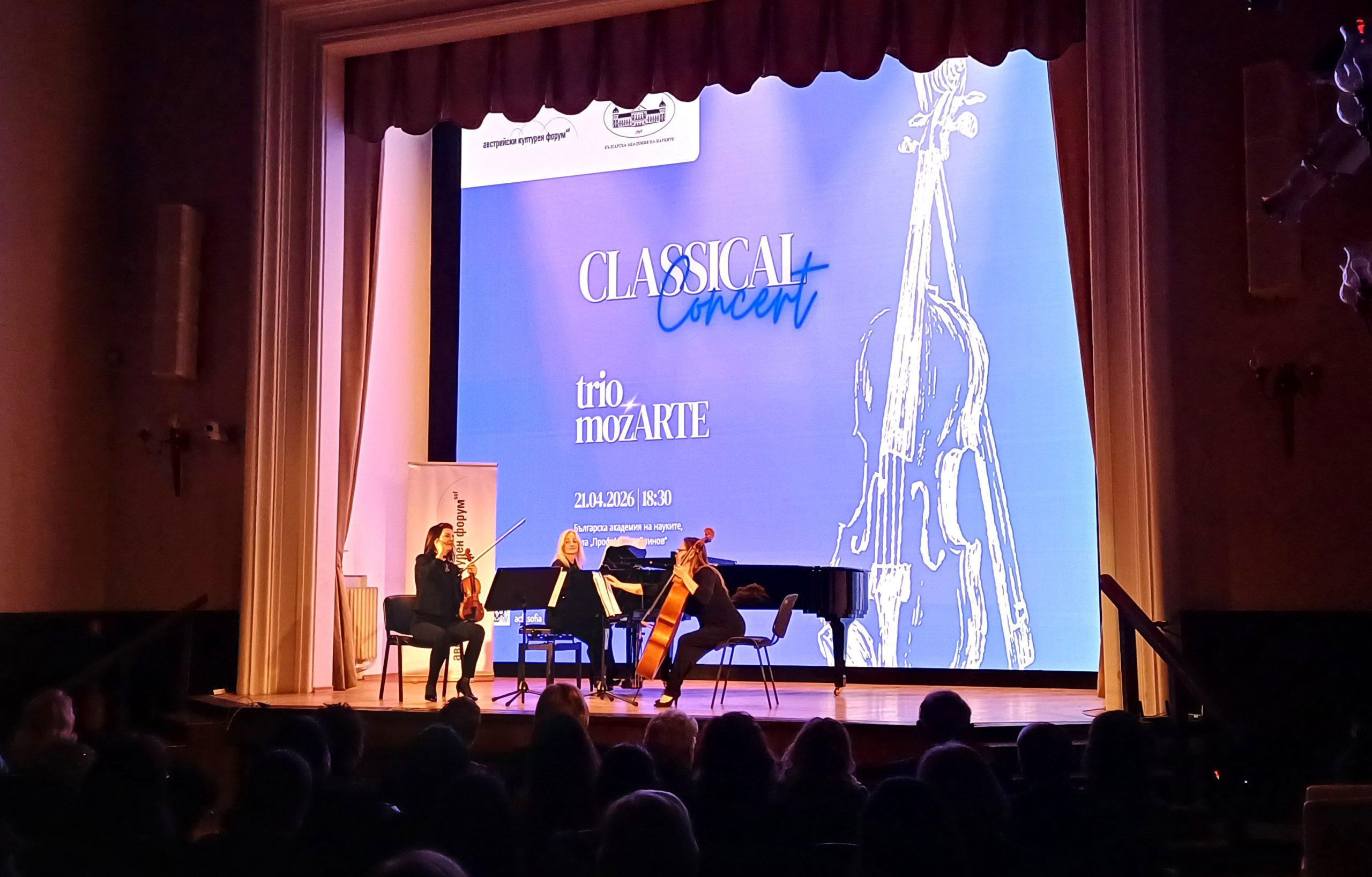 Музикална вечер, посветена на богатството и разнообразието на класическата музика от страните в Дунавския регион, се проведе на 21 април в зала „Проф. Марин Дринов“. Концертът на трио mozARTE Залцбург беше организиран от БАН и Австрийския културен форум София по повод българското председателство на Стратегията на Европейския съюз за Дунавския регион и в духа на Деня на Земята.
