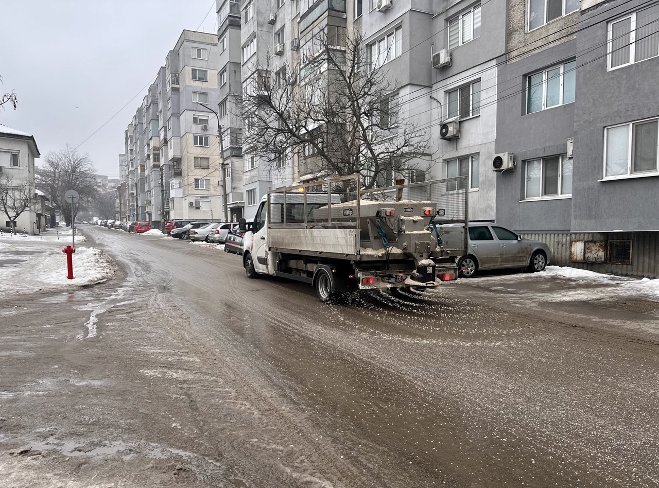 В условията на зимна обстановка в Русе продължава почистването и третирането срещу заледяване на улици, тротоари и пътни участъци в града и общината.