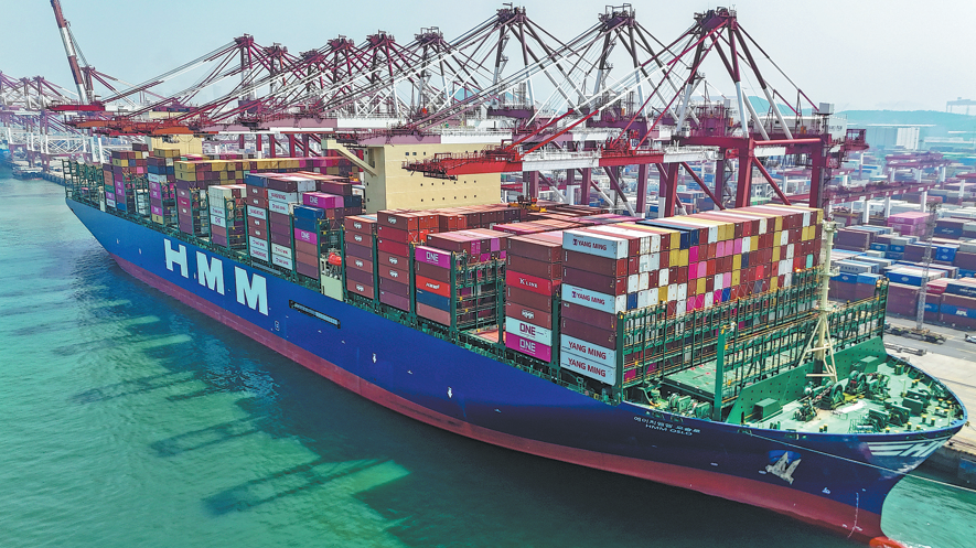 Товарен кораб се зарежда в пристанище Кингдао, провинция Шандонг. ZHANG JINGANG/ЗА КИТАЙ ДЕЙЛИ