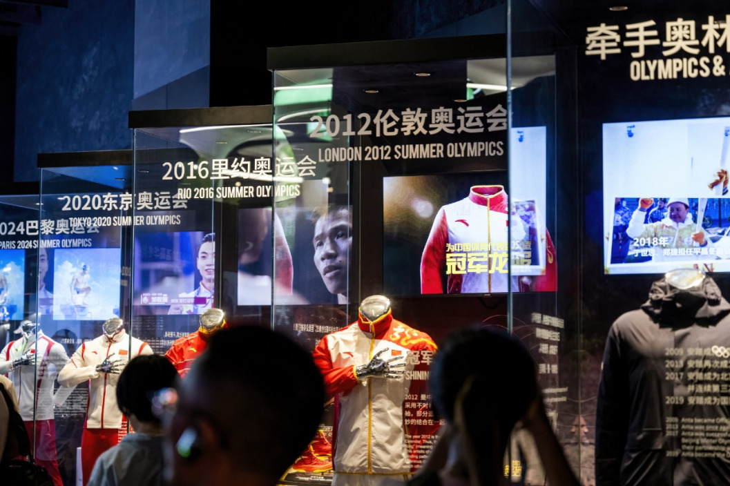 Спортните продукти от олимпийската серия на Anta са изложени в музей в Jinjiang, провинция Fujian на 22 август 2024 г. [Photo/Xinhua]