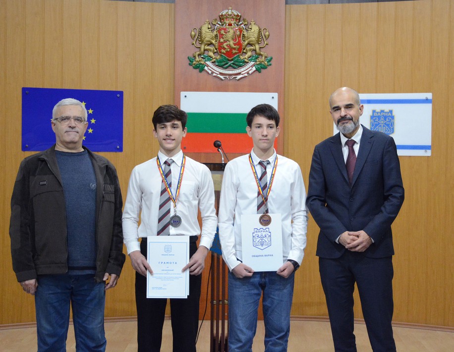 Община Варна отличи двамата варненски ученици – медалисти от Младежката международна олимпиада по астрономия и астрофизика (IOAAjr), която се проведе този месец в град Пятра Нямц, Румъния. Деветокласниците от Математическа гимназия „Д-р Петър Берон“ Лев Беленкий и Огнян Добрев завоюваха сребърен и бронзов медал, като премериха знания със 108 състезатели от 20 държави.