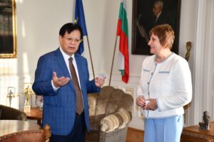 Председателят на БАН чл.-кор. Евелина Славчева се срещна днес в БАН с акад. Йонгуан Жу, професор по биогеохимия и екологично почвознание, академик на Китайската академия на науките и заместник-председател на Международния ѝ научен съвет (International Science Council).