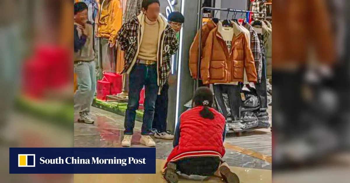 Видеозапис на жена, коленичила в търговски център в централен Китай, умоляваща съпруга си да й купи пухено яке, се разпространи в социалните медии, разпалвайки масово възмущение срещу мъжа.