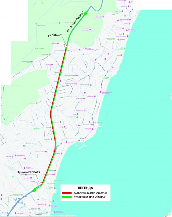 Движението ще се извършва двупосочно в южното платно (посока КК Златни пясъци). Съгласно одобрения линеен график дейностите в участъка са планирани за срок от три месеца, но зависят също от метеорологичната ситуация.