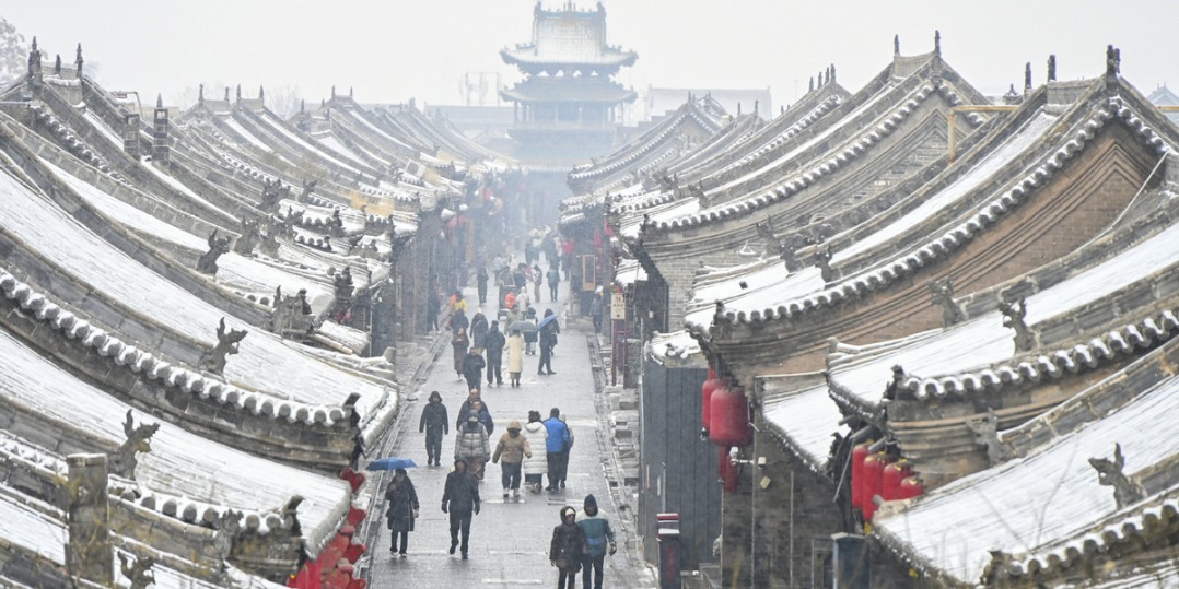 Хората правят снимки сред снеговалеж в Джиюан, провинция Хенан, 12 декември 2025 г. [Photo/Xinhua]