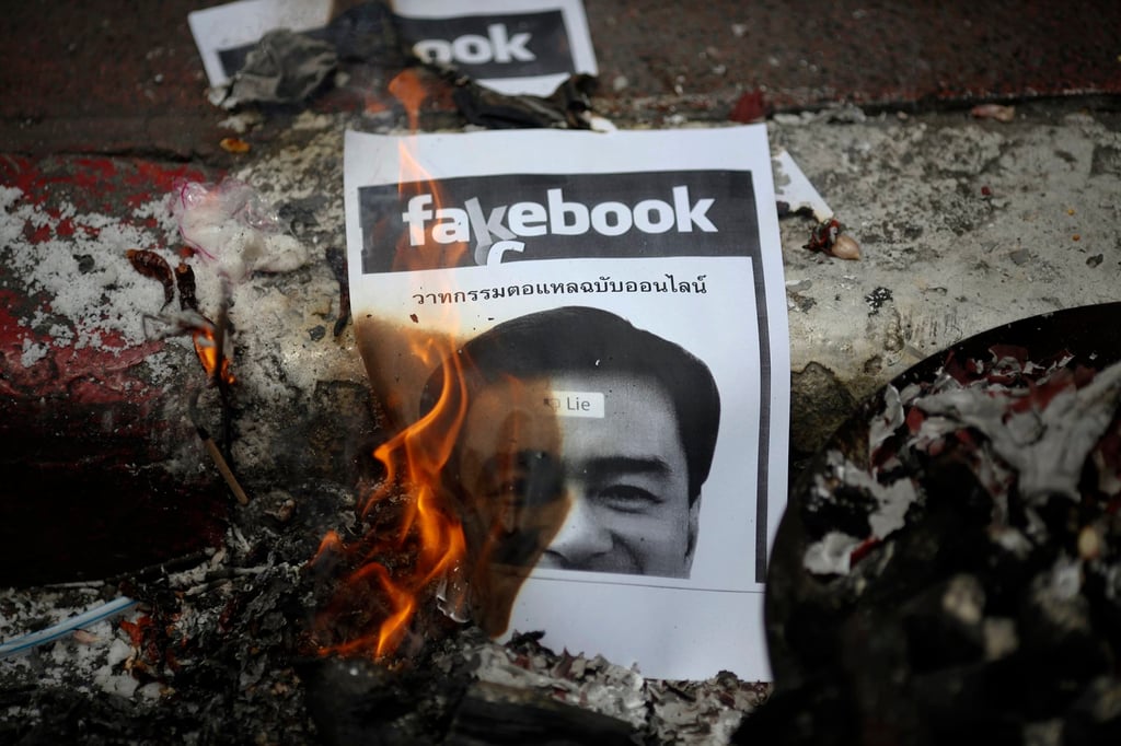 Антиправителствените протестиращи от движението с червена риза изгорят снимка на тогавашния министър-председател на Тайланд Абхисит Вежаджива през 2011 г. Снимка: РойтерсАнтиправителствените протестиращи от движението с червена риза изгорят снимка на тогавашния министър-председател на Тайланд Абхисит Вежаджива през 2011 г. Снимка: Ройтерс