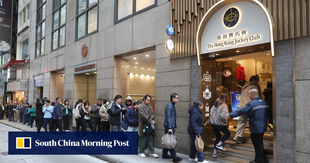 Дълга опашка се е образувала пред „щастлив“ клон за залагания на Хонг Конг Жокей Клуб в Central преди дългоочакваните 100 милиона хонконгски долара (12,8 милиона щатски долара) Марк Шести джакпот в събота вечер.
