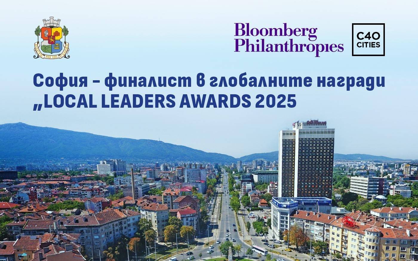 София е обявена за един от 26-те градове финалисти в престижните глобални награди „Местни лидери 2025“ – 2025 Local Leaders Awards, организирани от Bloomberg Philanthropies. Наградите отличават смели и ефективни инициативи с високо социално въздействие, насочени към справяне с климатичните предизвикателства на местно ниво.