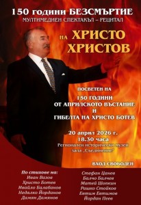 Поетичен спектакъл „150 години безсмъртие“, посветен на 150 годишнината от Априлското въстание и 150 години от гибелта на Христо Ботев. Автор и изпълнител – Христо Христов.