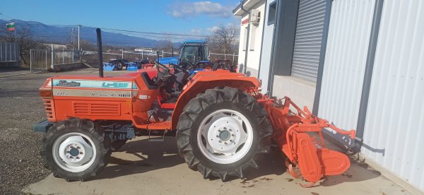 KUBOTA, модел L1-435 е компактен многофункционален трактор, оборудван с 4-цилиндров дизелов двигател Kubota с мощност ~45 конски сили, сервоуправление, 4×4 задвижване и четири скорости в четири диапазона с превключване на скоростите. Гуми: предни- 8. 00-18” и задни 13. 6-26”. Междуосие 184 см…