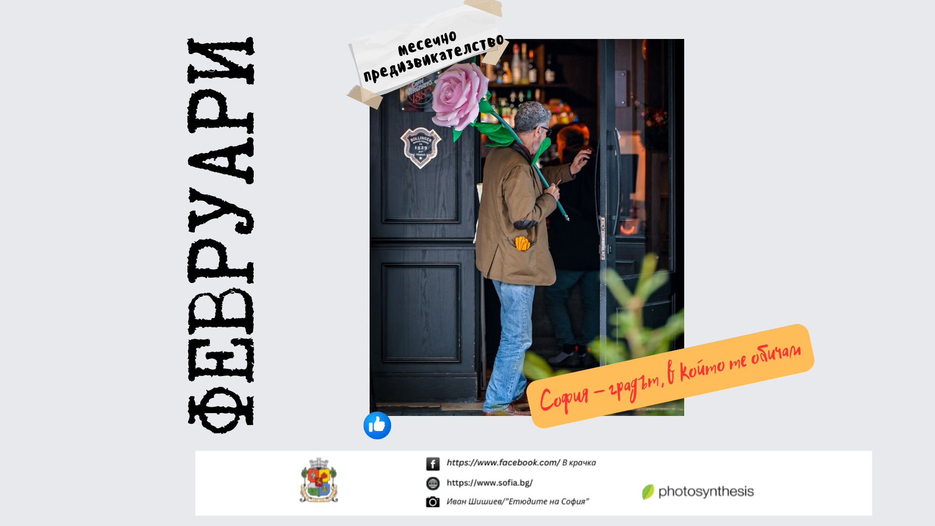 През месеца на любовта те предизвикваме с тема: “София – градът, в който те обичам”. Прати ни кадрите си до 20-о число на месеца на e-mail [email protected], а нашето жури от професионалисти ще се погрижи да определи най-добрия кадър.