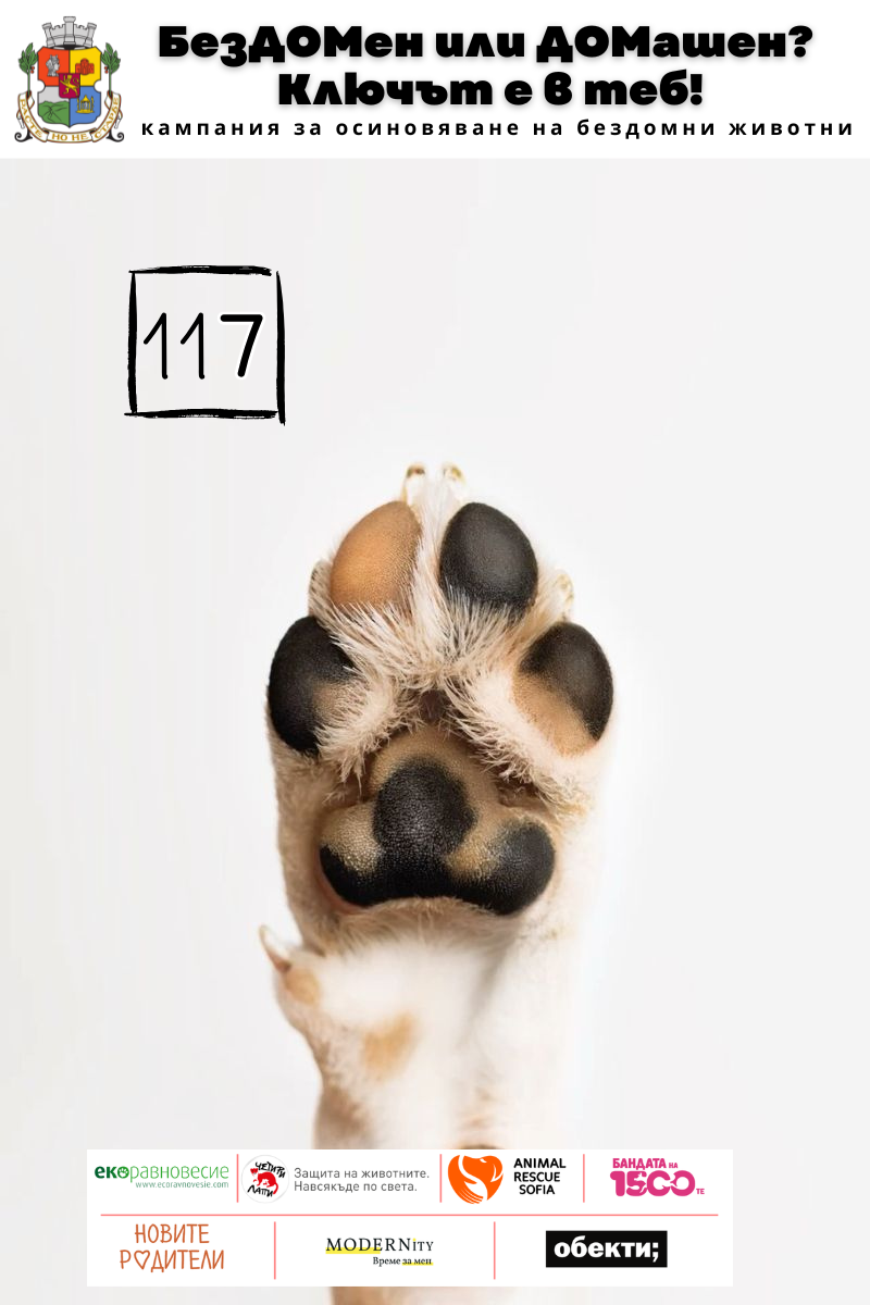 Кампанията „БезДОМен или ДОМашен? Ключът е в теб!“ се организира от дирекция „Спорт и младежки дейности“ в партньорство с ОП „Екоравновесие“, ЧЕТИРИ ЛАПИ, Animal Rescue Sofia и сдружение „Бандата на 1500-те“, и с медийното съдействие на НОВИТЕ РОДИТЕЛИ, Modernity.bg и Obekti.bg