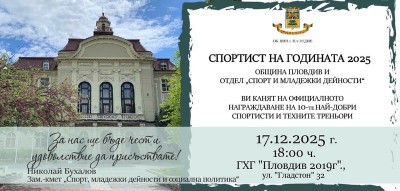 Sportistnagodinata2025На 17 декември в 18:00 ч. в ГХГ „Пловдив 2019 г.“, Община Пловдив ще отличи най-успешните си спортисти, треньори и спортни деятели на тържествената церемония „Спортист на годината“. В тазгодишното издание на инициативата в надпреварата участват общо 46 състезатели и 3 отбора, номинирани за своите изключителни постижения през календарната година.